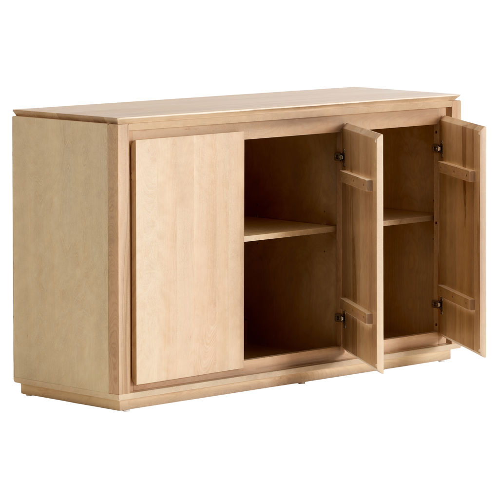 This natural wood sideboard embodies functional elegance in your kitchen. Its clean lines and meticulous finish blend harmoniously into any interior, while its multiple compartments offer ample storage for your dishes and culinary accessories.